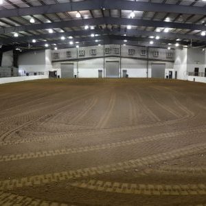 The arena is a 51,200 square foot indoor heated showplace with a 198 x 259 foot arena floor surrounded by a concrete concourse with retractable stadium seating that will seat approximately 1,500 people. It also has a state-of-the-art sound system, restrooms, and 400 paved parking spaces. The outdoor warm-up arena is 120 x 180 feet and is located on the north side of the building.